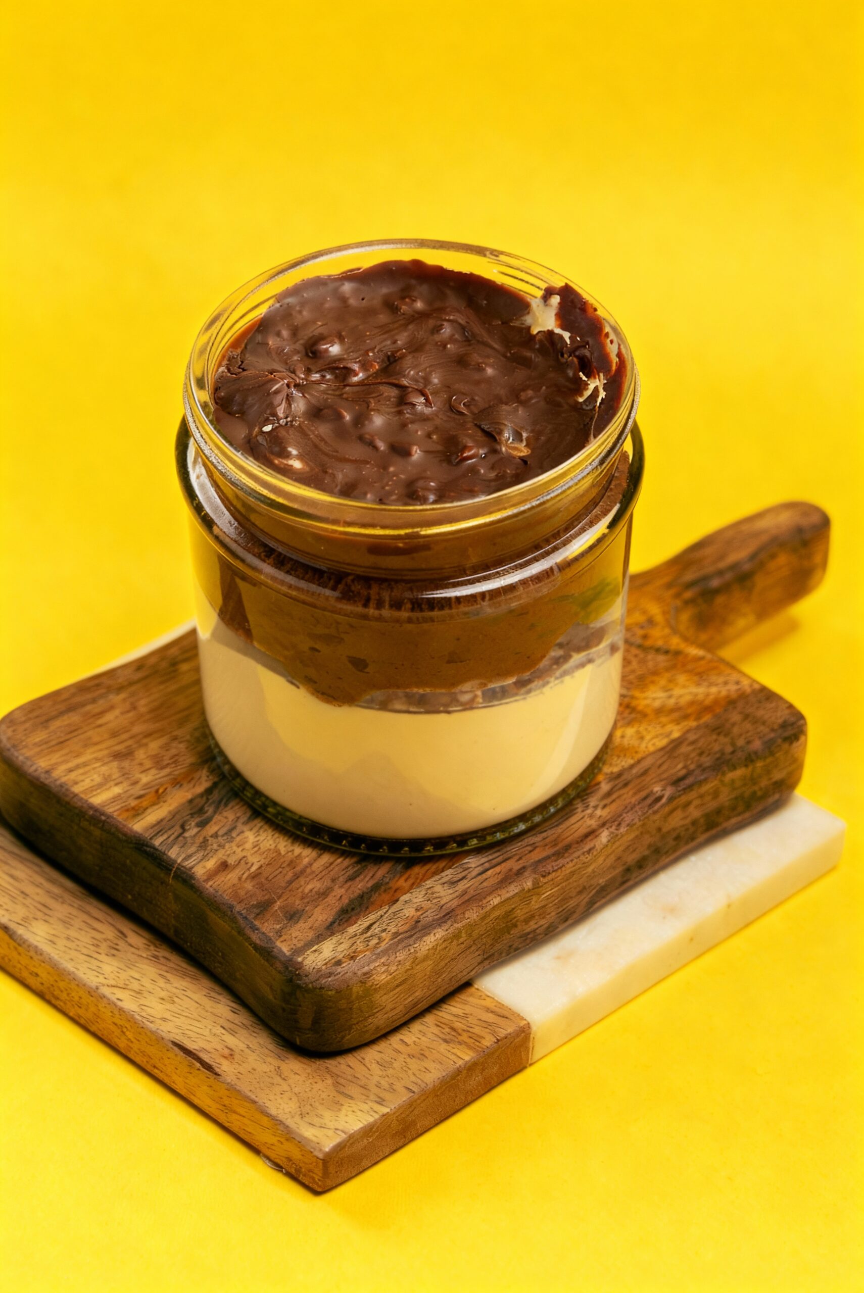 Γιαούρτι χαμηλών λιπαρών, πάστα φουντουκιού, βρώμη, σπόροι τσία, κακάο, σοκολάτα υγείας με στέβια, φυτική πρωτεΐνη.